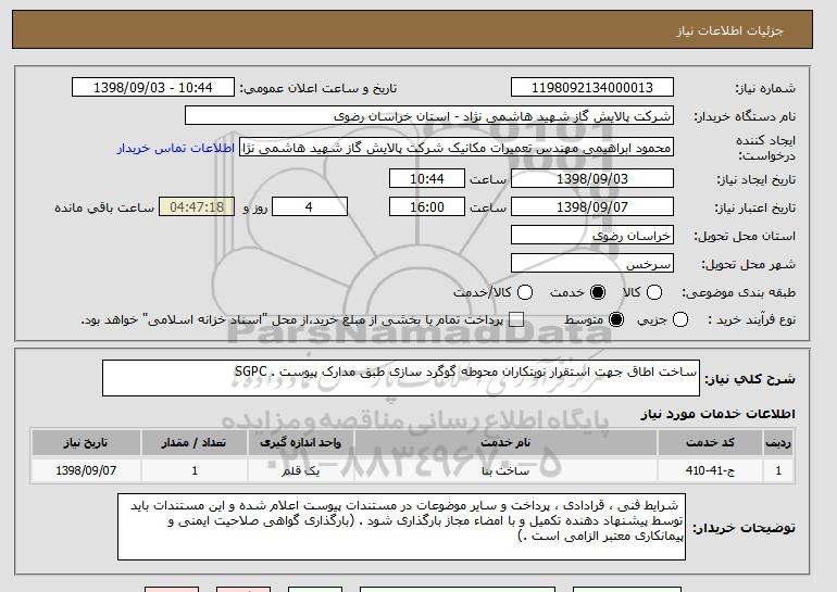 نام دستگاه خریدار:شرکت پالایش گاز شهید هاشمی نژاد - استان خراسان رضوی
