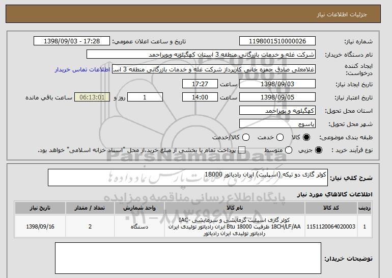 نام دستگاه خریدار:شرکت غله و خدمات بازرگانی منطقه 3 استان کهگیلویه وبویراحمد