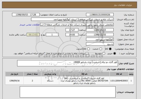 شرح کلی نیاز: کولر گازی دو تیکه (اسپلیت) ایران رادیاتور 18000