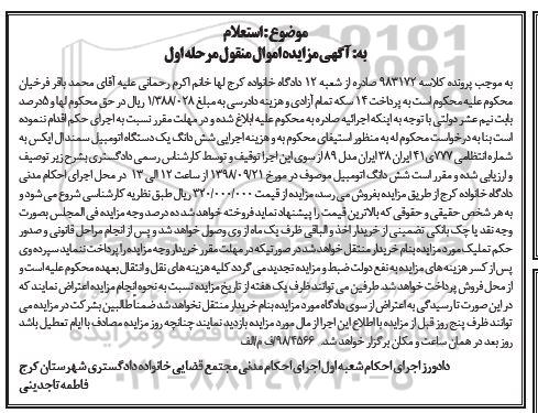 دادورز اجرای احکام شعبه اول اجرای احکام مدنی مجتمع قضایی خانواده دادگستری شهرستان کرج
