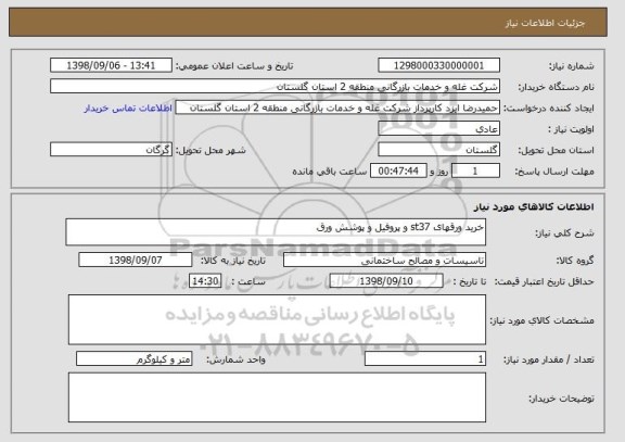 شرح کلی نیاز: خرید ورقهای st37 و پروفیل و پوشش ورق