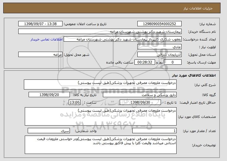 نام دستگاه خریدار:بیمارستان شهید دکتر بهشتی شهرستان مراغه