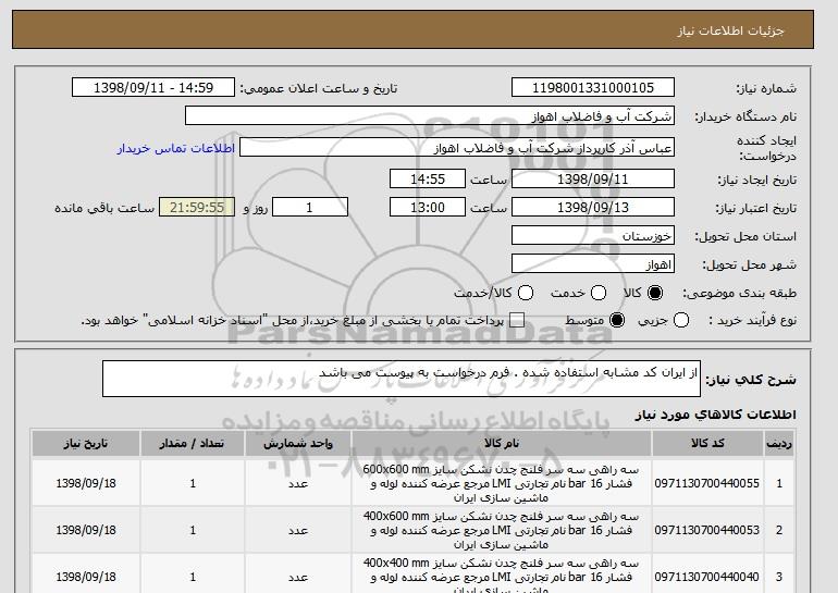 نام دستگاه خریدار:شرکت آب و فاضلاب اهواز