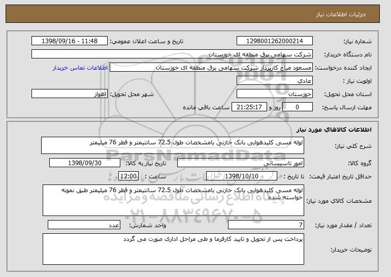 نام دستگاه خریدار:شرکت سهامی برق منطقه ای خوزستان