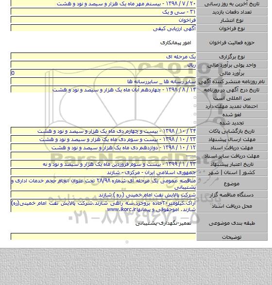 مناقصه عمومی یک مرحله ای شماره ۲۸/۹۸ تحت عنوان انجام حجم خدمات اداری و پشتیبانی