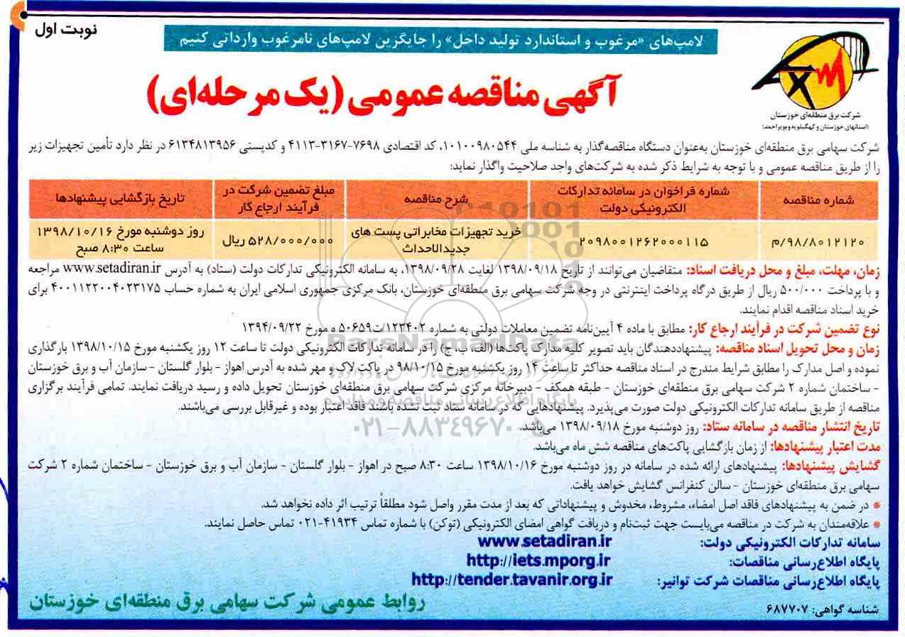| 98/8012120/م | 2098001262000115 | خرید تجهیزات مخابراتی پست های جدیدالاحداث |
