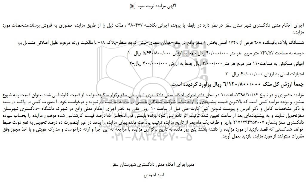 ((آگهی مزایده نوبت سوم ))