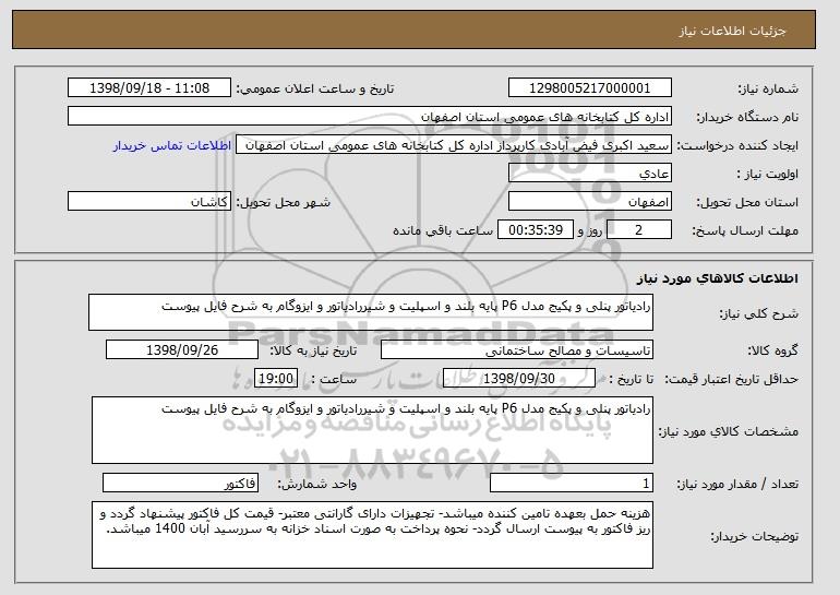 نام دستگاه خریدار:اداره کل کتابخانه های عمومی استان اصفهان