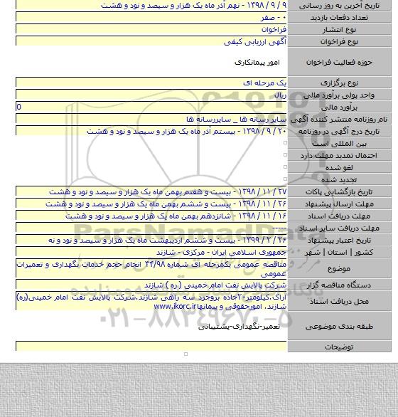 مناقصه عمومی یکمرحله ای شماره ۳۴/۹۸ انجام حجم خدمات نگهداری و تعمیرات عمومی