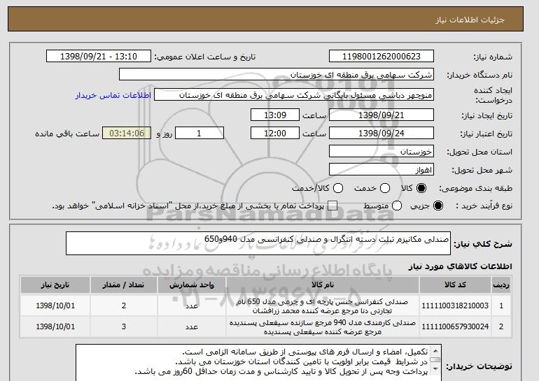 نام دستگاه خریدار:شرکت سهامی برق منطقه ای خوزستان
