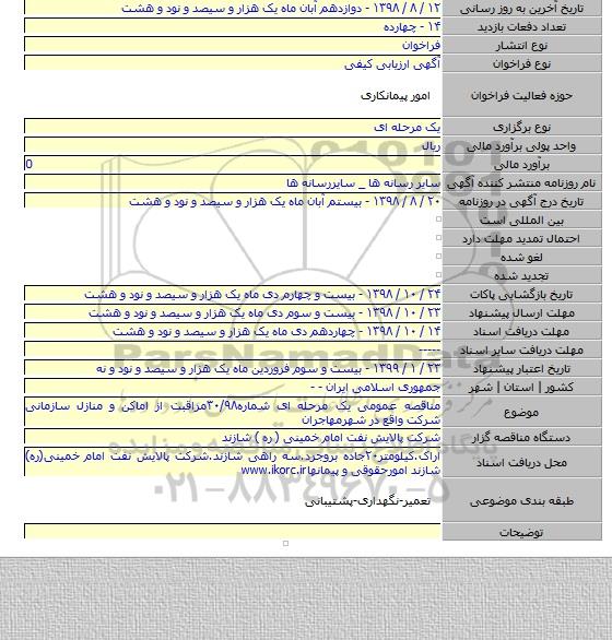 مناقصه, مناقصه عمومی یک مرحله ای شماره۳۰/۹۸مراقبت از اماکن و منازل سازمانی شرکت واقع در شهرمهاجران ؟