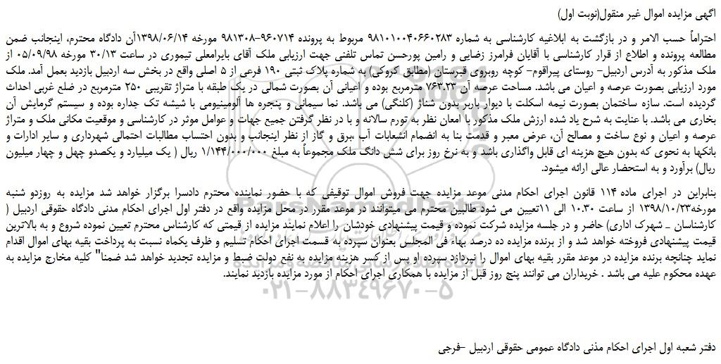 اگهی مزایده اموال غیر منقول(نوبت اول)