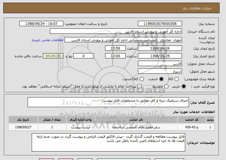 نام دستگاه خریدار:اداره کل آموزش و پرورش استان فارس