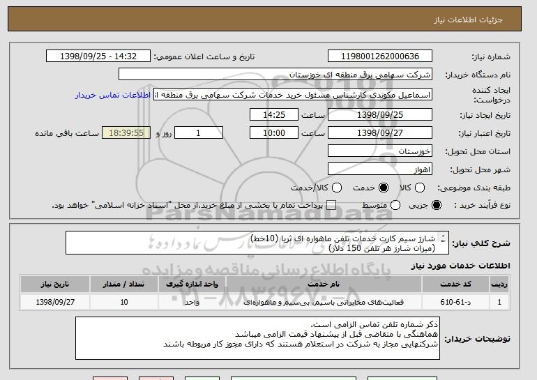 شرح کلی نیاز: شارژ سیم کارت خدمات تلفن ماهواره ای ثریا (10خط)