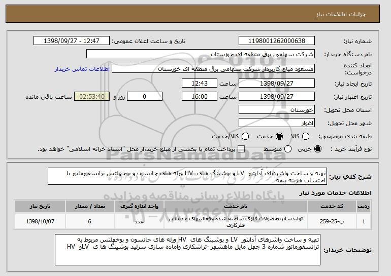 نام دستگاه خریدار:شرکت سهامی برق منطقه ای خوزستان