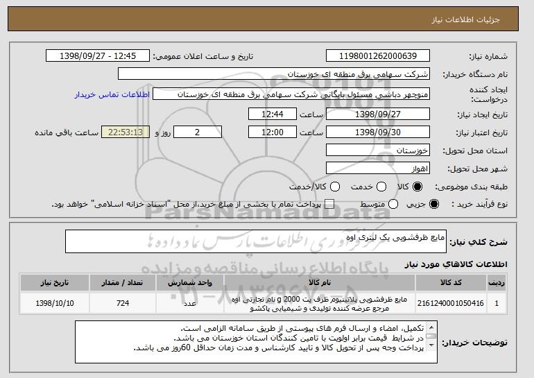 نام دستگاه خریدار:شرکت سهامی برق منطقه ای خوزستان