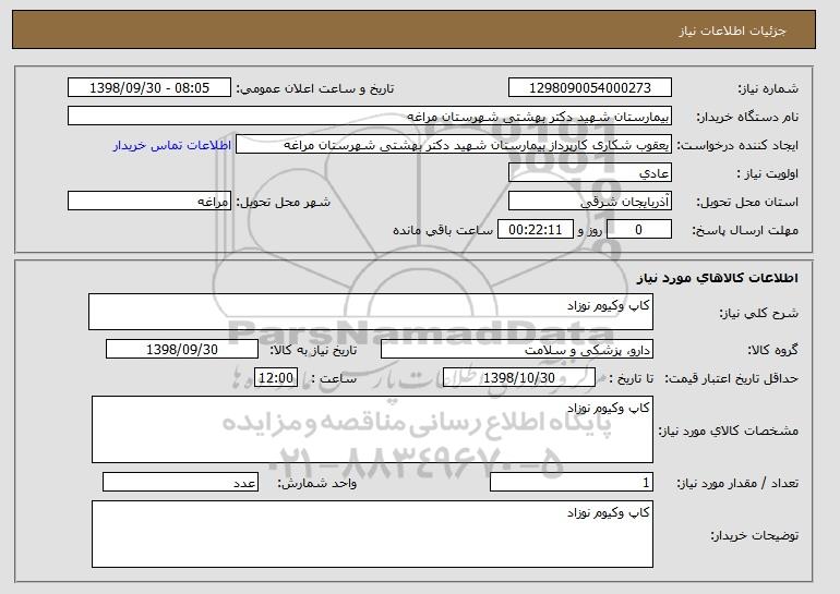 نام دستگاه خریدار:بیمارستان شهید دکتر بهشتی شهرستان مراغه