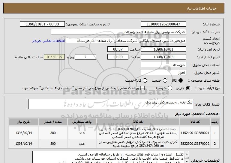 شرح کلی نیاز: لنگ نخی وحشره کش پیف پاف