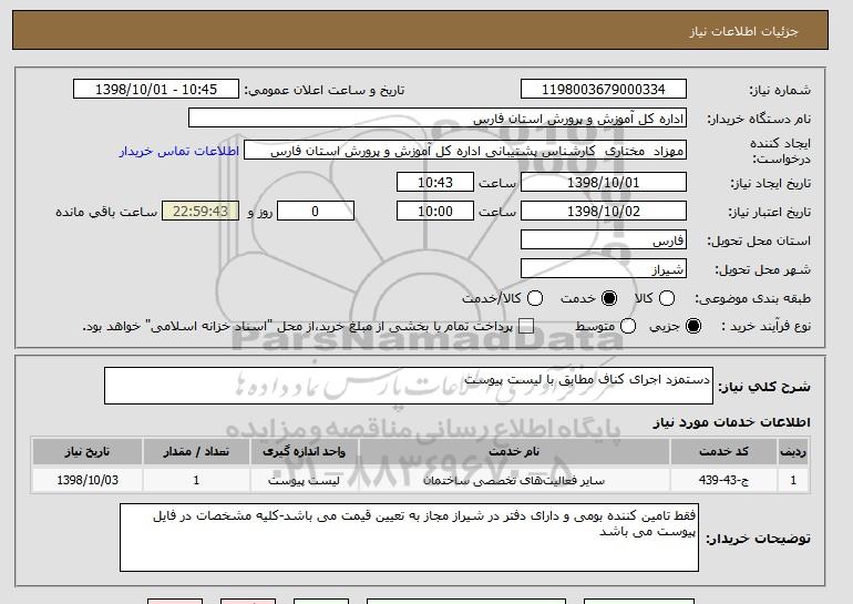 نام دستگاه خریدار:اداره کل آموزش و پرورش استان فارس