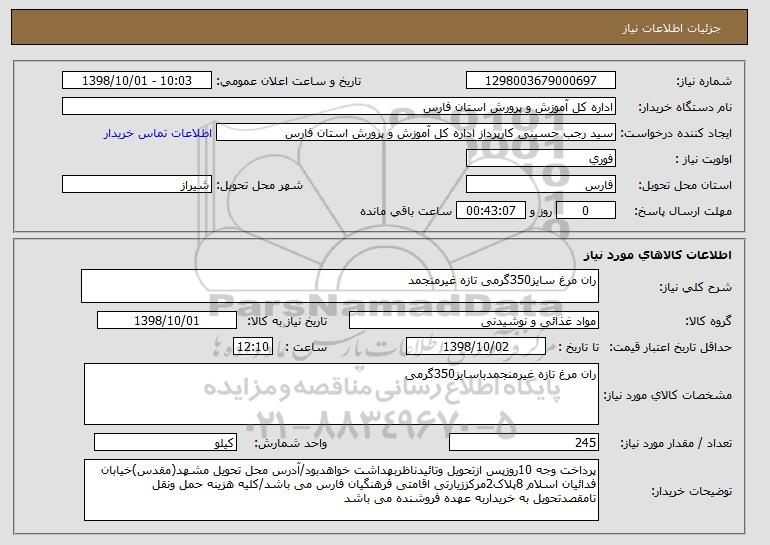 نام دستگاه خریدار:اداره کل آموزش و پرورش استان فارس