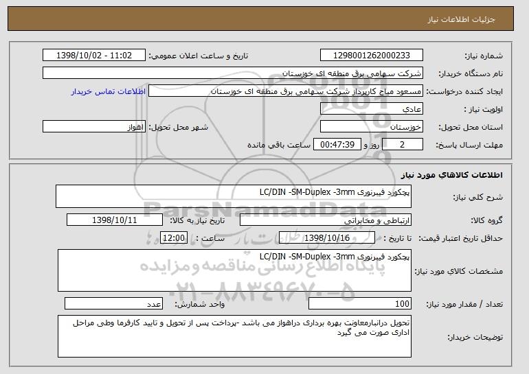 نام دستگاه خریدار:شرکت سهامی برق منطقه ای خوزستان