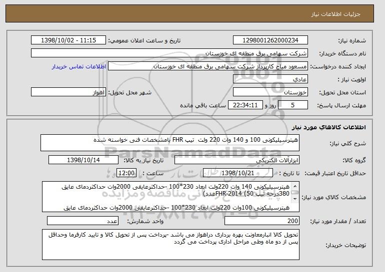 نام دستگاه خریدار:شرکت سهامی برق منطقه ای خوزستان
