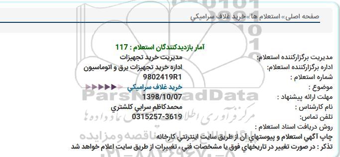 اداره برگزارکننده استعلام: اداره خرید تجهیزات برق و اتوماسیون