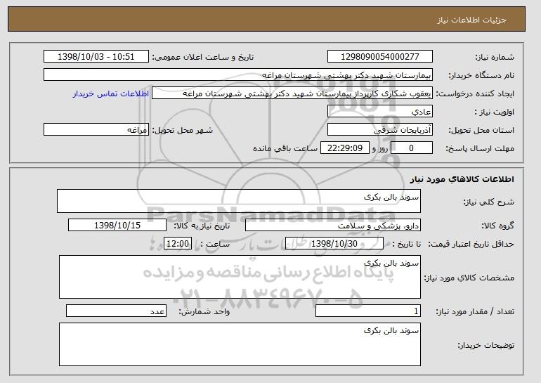 نام دستگاه خریدار:بیمارستان شهید دکتر بهشتی شهرستان مراغه