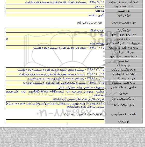 مناقصه عمومی دومرحله ای شمارهRND-۹۷۱۸۲۰۶-MDخرید انواع الکتروموتور ضدانفجار