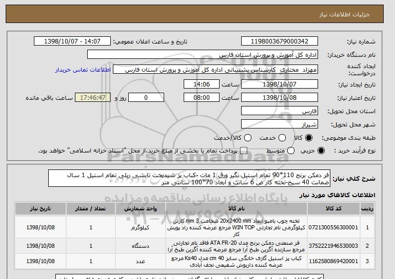 نام دستگاه خریدار:اداره کل آموزش و پرورش استان فارس