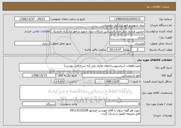 نام دستگاه خریدار:بنیاد شهید و امور ایثارگران مازندران
