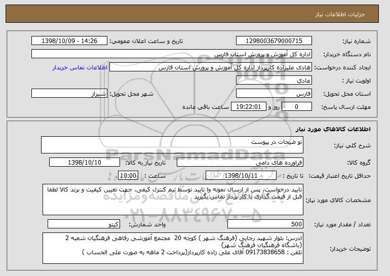 نام دستگاه خریدار:اداره کل آموزش و پرورش استان فارس