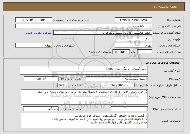 شرح کلی نیاز: خرید گریبکس نو مگان مدل 2000