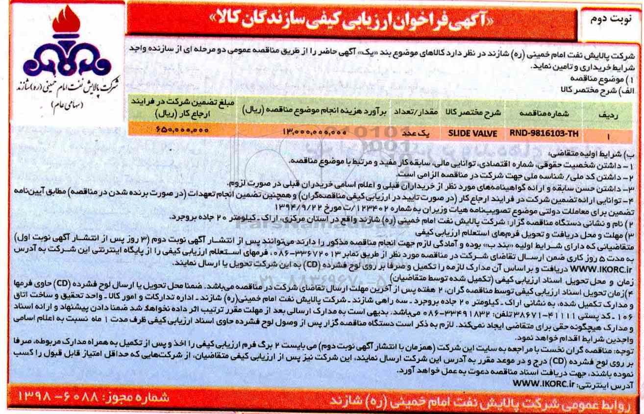 SLIDE VALVE یک عدد 13.000.000.000 650.000.000