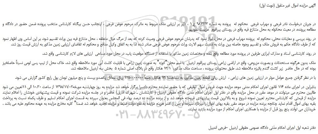 اگهی مزایده اموال غیر منقول (نوبت اول)