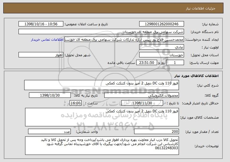 نام دستگاه خریدار:شرکت سهامی برق منطقه ای خوزستان