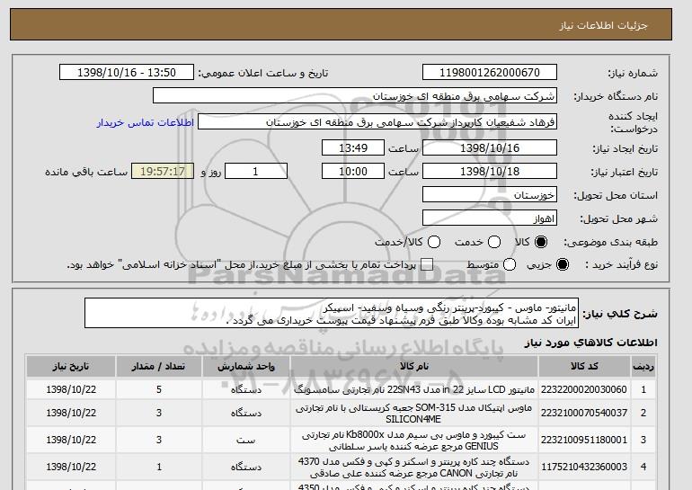 نام دستگاه خریدار:شرکت سهامی برق منطقه ای خوزستان
