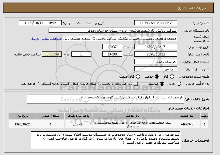 استعلام طراحی 23 عدد TSR ابزار دقیق شرکت پالایش گاز شهید هاشمی نژاد, استعلام طراحی 23 عدد TSR ابزار دقیق شرکت پالایش گاز شهید هاشمی نژاد