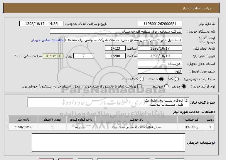 نام دستگاه خریدار:شرکت سهامی برق منطقه ای خوزستان