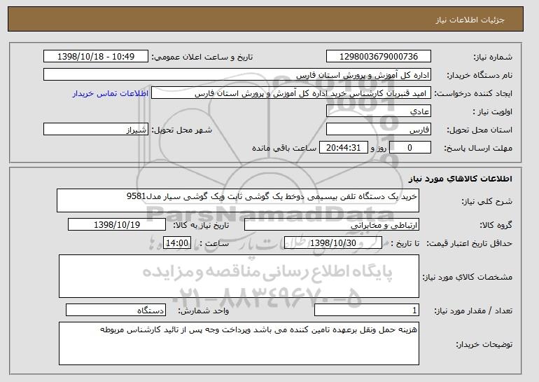 نام دستگاه خریدار:اداره کل آموزش و پرورش استان فارس