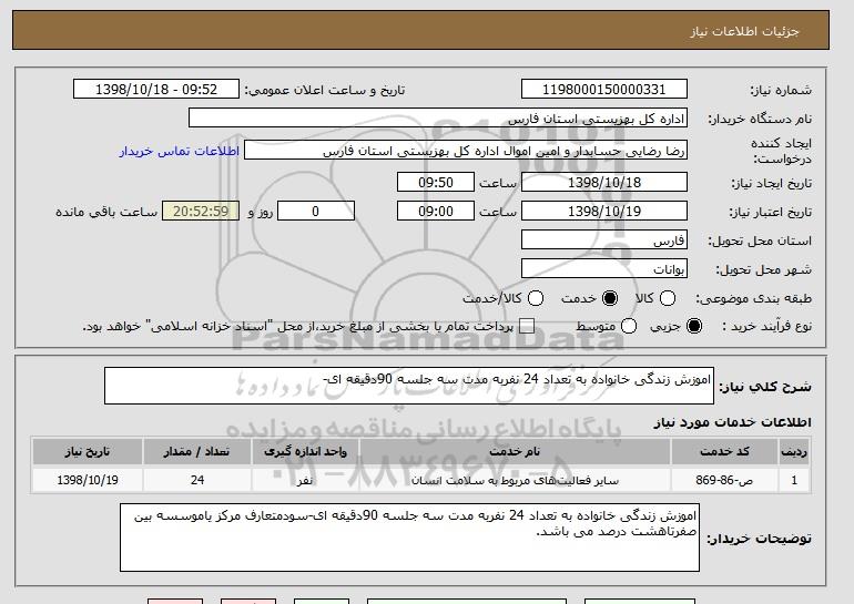 شرح کلی نیاز: اموزش زندگی خانواده به تعداد 24 نفربه مدت سه جلسه 90دقیقه ای-