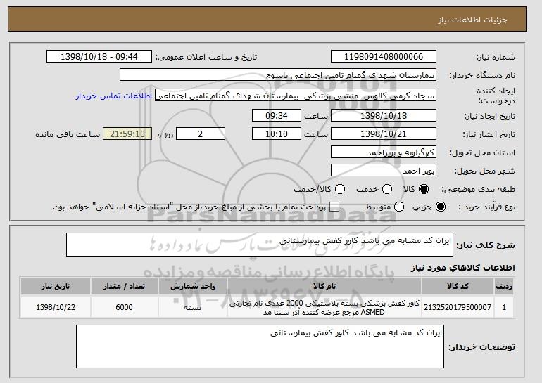 شرح کلی نیاز: ایران کد مشابه می باشد کاور کفش بیمارستانی