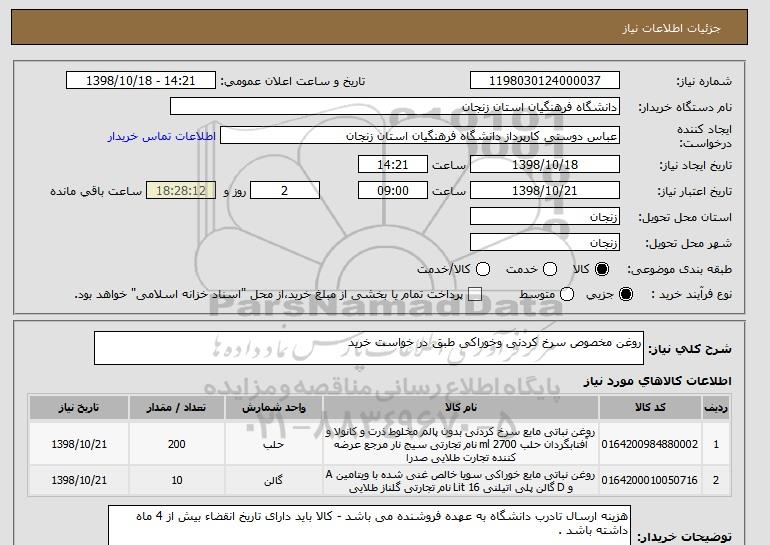شرح کلی نیاز: روغن مخصوص سرخ کردنی وخوراکی طبق در خواست خرید