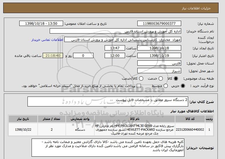 نام دستگاه خریدار:اداره کل آموزش و پرورش استان فارس