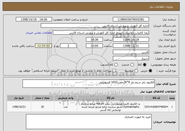 نام دستگاه خریدار:اداره کل آموزش و پرورش استان فارس