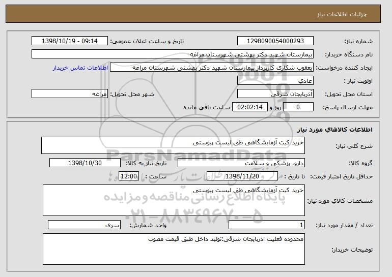 نام دستگاه خریدار:بیمارستان شهید دکتر بهشتی شهرستان مراغه