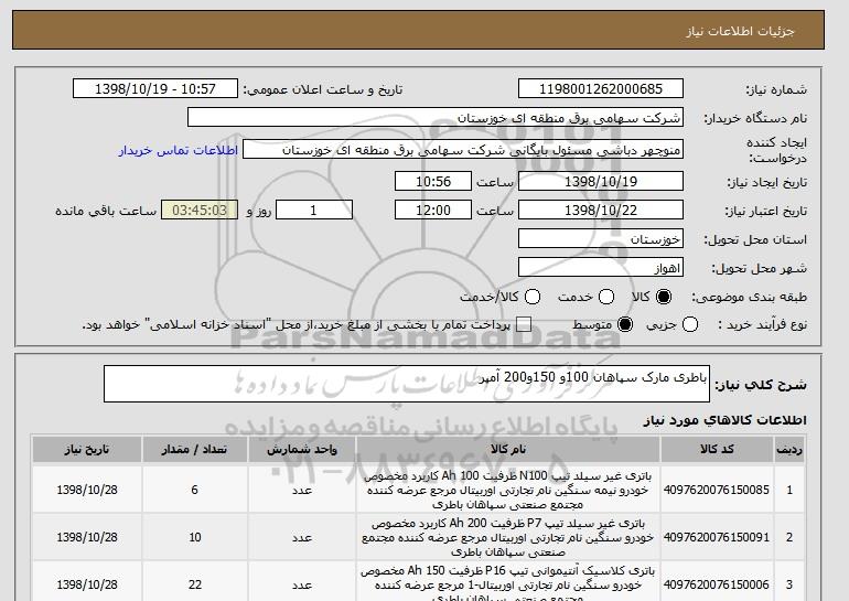 استعلام باطری مارک سپاهان 100و 150و200 آمپر, استعلام باطری مارک سپاهان 100و 150و200 آمپر