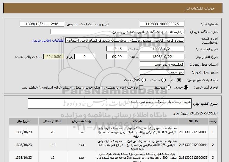 نام دستگاه خریدار:بیمارستان شهدای گمنام تامین اجتماعی یاسوج