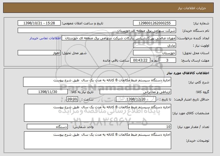 نام دستگاه خریدار:شرکت سهامی برق منطقه ای خوزستان