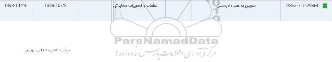 | PSEZ-715-298M | سوییچ به همراه لایسنس | قطعات و تجهیزات مخابراتی | 98.10.22 | 98.10.24 |